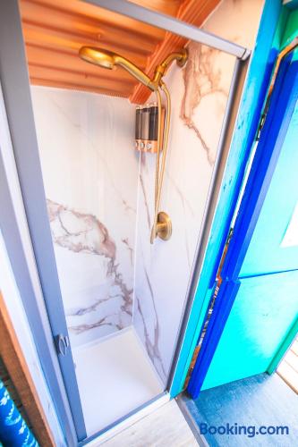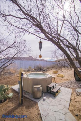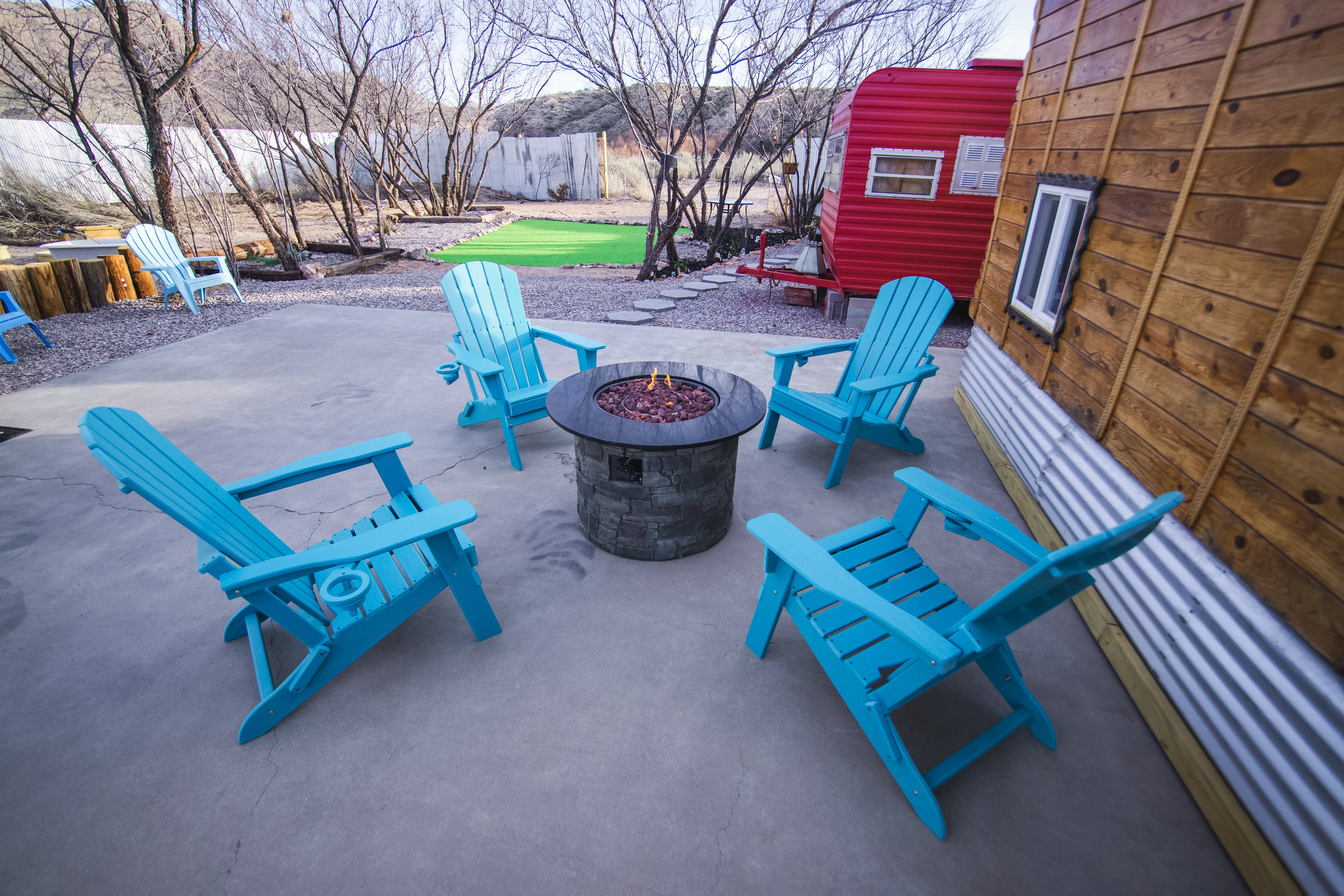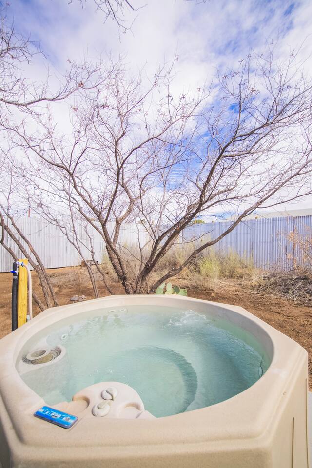 The Dream Wagon is your entire private unit within Spellbound Springs tiny home village - you'll have exclusive use of all indoor spaces and your private deck. The hot springs and other outdoor amenities are shared communal spaces with fellow Spellbound Springs guests.